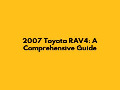2007 Toyota RAV4: Specs, Problems & Repair Guide