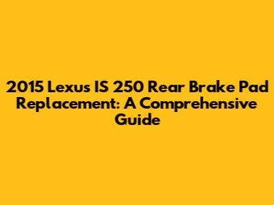 Hey guys! So, you're here because you need to swap out those rear brake pads on your awesome 2015 Lexus IS 250, right? Awesome! Replacing your brake pads is a pretty manageable DIY project, and honestly, you don't need to be a car wizard to get it done. This guide will walk you through the entire process, step-by-step, making it super easy to understand. We'll cover everything from what you'll need to the final torque specs. Let's dive in and get those brakes back in tip-top shape!