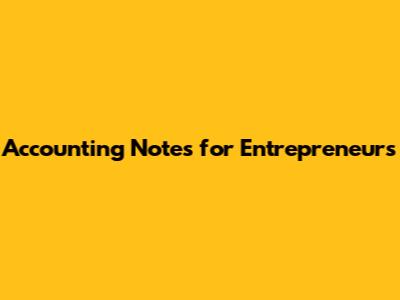 Accounting Notes For Entrepreneurs