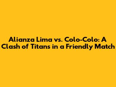 Alianza Lima Vs Colo Colo: Epic Friendly Match Showdown