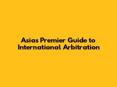 Asia's Premier Guide To International Arbitration