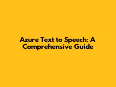 Azure Text To Speech: A Comprehensive Guide