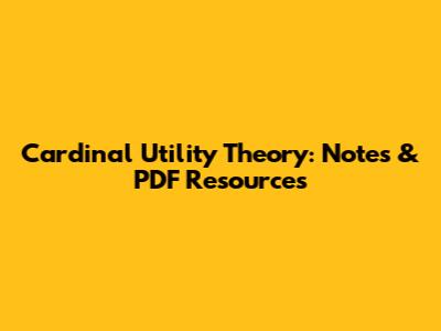 Cardinal Utility Theory: Notes & PDF Resources