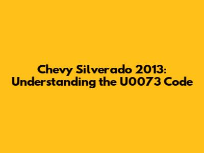 Hey guys! Ever had that nagging feeling when your Chevy Silverado's check engine light pops on? Well, one culprit could be the dreaded U0073 code. But don't sweat it! We're going to break down what this code means for your 2013 Silverado, what causes it, and how you can get it sorted out. So, buckle up and let's dive in!