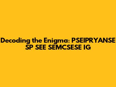 • A combination of multiple acronyms or abbreviations: It's possible that "PSEIPRYANSE SP SEE SEMCSESE IG" is actually a string of smaller acronyms or abbreviations strung together. This would make it even more challenging to decode, as you'd need to identify each component individually.