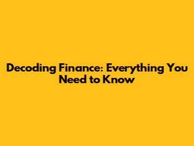 Decoding Finance: Everything You Need To Know