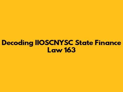 Key Components of IIOSCNYSC State Finance Law 163