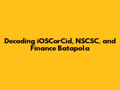 Decoding IOSCorCid, NSCSC, And Finance Batapola