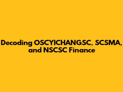 Decoding OSCYICHANGSC, SCSMA, And NSCSC Finance
