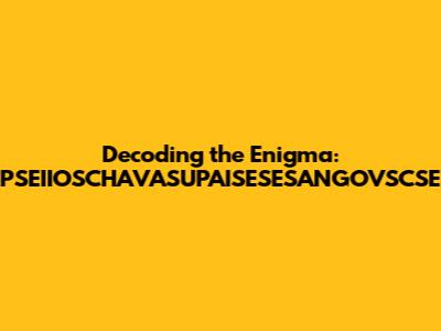Decoding PSEIIOSCHAVASUPAISESESANGOVSCSE: A Comprehensive Guide