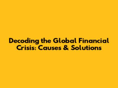 Decoding The Global Financial Crisis: Causes & Solutions