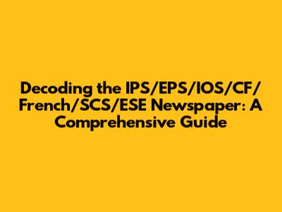 Decoding The IPS/EPS/IOS/CF/French/SCS/ESE Newspaper: A Comprehensive Guide