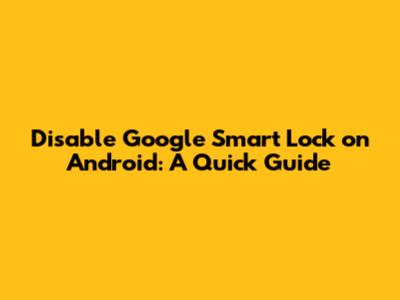 Disable Google Smart Lock On Android: A Quick Guide