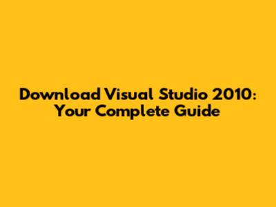 Download Visual Studio 2010: A Comprehensive Guide