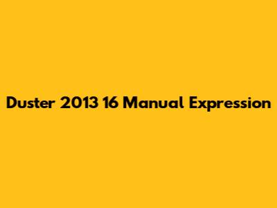 Is the Duster 2013 16 Manual Expression Right for You?