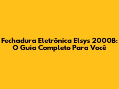O Que Torna a Fechadura Eletrônica Elsys 2000B Especial?