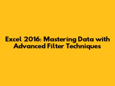 Excel 2016: Mastering Data With Advanced Filter Techniques