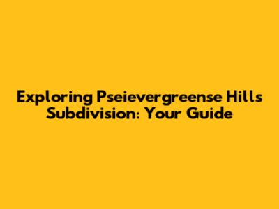 Exploring Pseievergreense Hills Subdivision: Your Guide