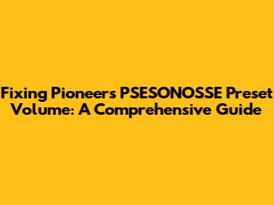 Fixing Pioneer's PSESONOSSE Preset Volume: A Comprehensive Guide