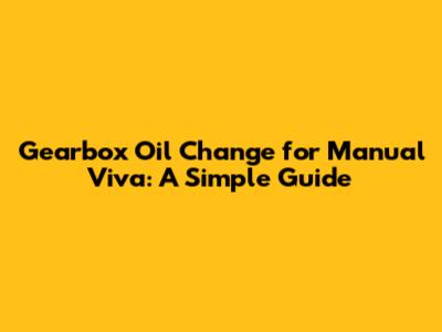 Gearbox Oil Change For Manual Viva: A Simple Guide