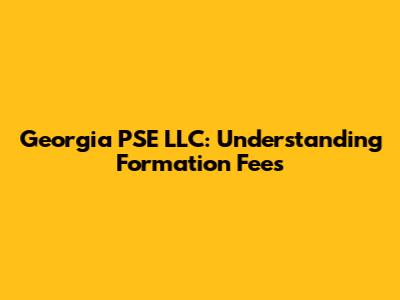 Georgia PSE LLC: Understanding Formation Fees