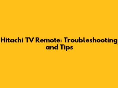 Hitachi TV Remote: Troubleshooting And Tips