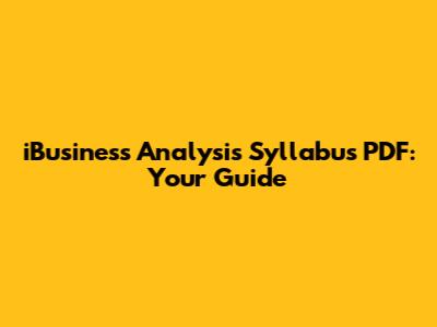 IBusiness Analysis Syllabus PDF: Your Guide