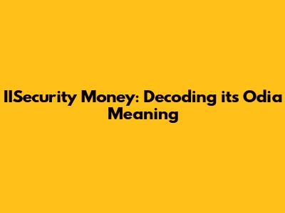 IISecurity Money: Understanding The Odia Meaning
