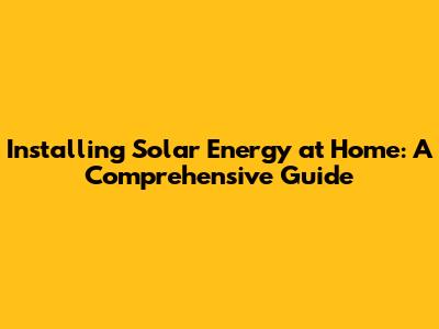Installing Solar Energy At Home: A Comprehensive Guide