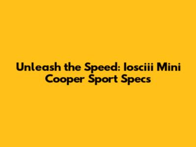 Iosciii Mini Cooper Sport: Performance Specs