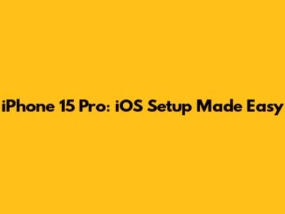 IPhone 15 Pro: IOS Setup Made Easy