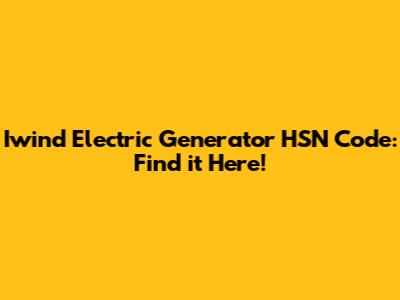 Iwind Electric Generator HSN Code: Find It Here!