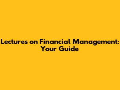 Lectures On Financial Management: Your Guide