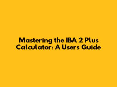 Mastering The IBA 2 Plus Calculator: A User's Guide