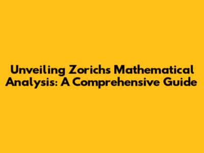 Mathematical Analysis By Zorich: A Deep Dive