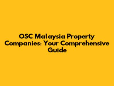 OSC Malaysia: Your Guide To Property Companies
