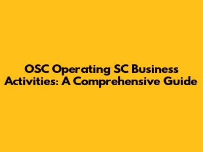OSC Operating SC: Your Guide To Business Activities