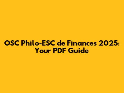 OSC Philo-ESC De Finances 2025: Your PDF Guide