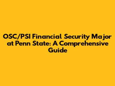 OSC/PSI Major At Penn State: A Financial Security Guide