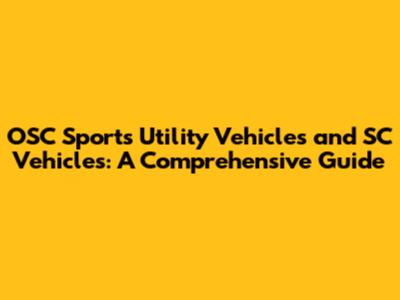 OSC Sports Utility Vehicles And SC Vehicles: A Comprehensive Guide