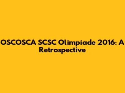 OSCOSCA SCSC Olimpiade 2016: A Retrospective