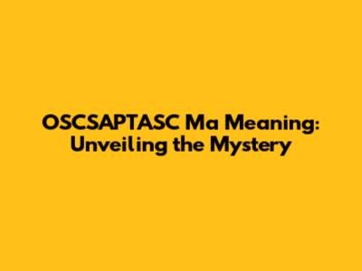 OSCSAPTASC Ma Meaning: Unveiling The Mystery