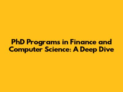 PhD Programs In Finance And Computer Science