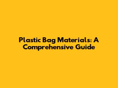 Plastic Bag Materials: A Comprehensive Guide