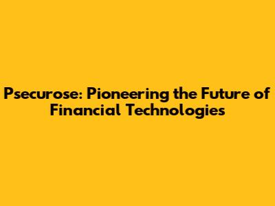 Psecurose: Revolutionizing Financial Technologies