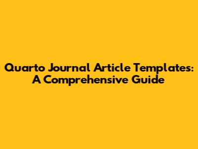 Hey everyone! Are you looking to create stunning and professional journal articles? Well, Quarto journal article templates are here to save the day! In this comprehensive guide, we'll dive deep into everything you need to know about using these fantastic templates to make your academic writing process a breeze. We'll explore what Quarto is, the benefits of using templates, how to choose the right one for your needs, and how to customize it to perfectly fit your research. So, buckle up, because we're about to embark on a journey that will transform the way you approach writing journal articles. Let's get started, shall we?