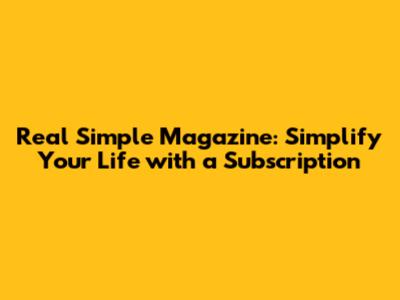 In a world thatâs constantly bombarding us with complexity and chaos, Real Simple magazine offers a refreshing dose of clarity and calm. Itâs more than just a magazine; itâs a guide to living a more intentional, fulfilling life. With its practical advice, inspiring stories, and stunning visuals, Real Simple empowers you to simplify your surroundings, streamline your routines, and focus on what truly matters. So, what are you waiting for? Subscribe to Real Simple magazine today and start embracing the simple life! You deserve it!
