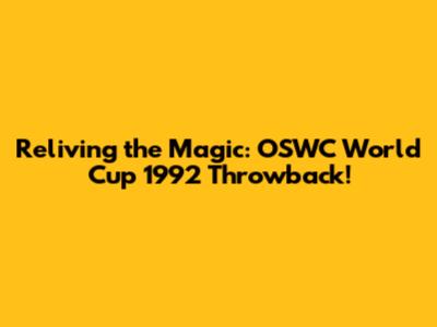 Reliving The Magic: OSWC World Cup 1992 Throwback!