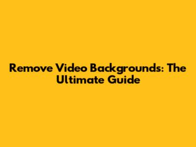 Remove Video Backgrounds: The Ultimate Guide