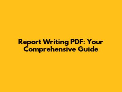 Report Writing PDF: Your Comprehensive Guide